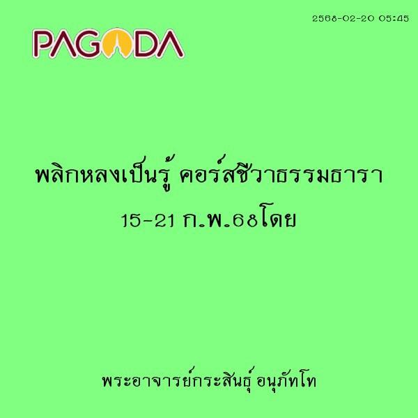 • 15043 25680220_0545_พลิกหลงเป็นรู้ คอร์สชีวาธรรมธารา 15-21 ก.พ.68โดย /aj-kasin/25680220-0545-15-21-68.html