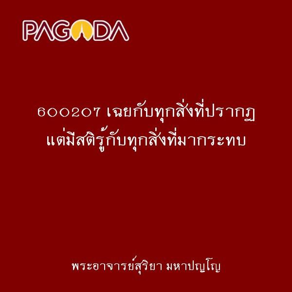 • 600207 เฉยกับทุกสิ่งที่ปรากฏ แต่มีสติรู้กับทุกสิ่งที่มากระทบ