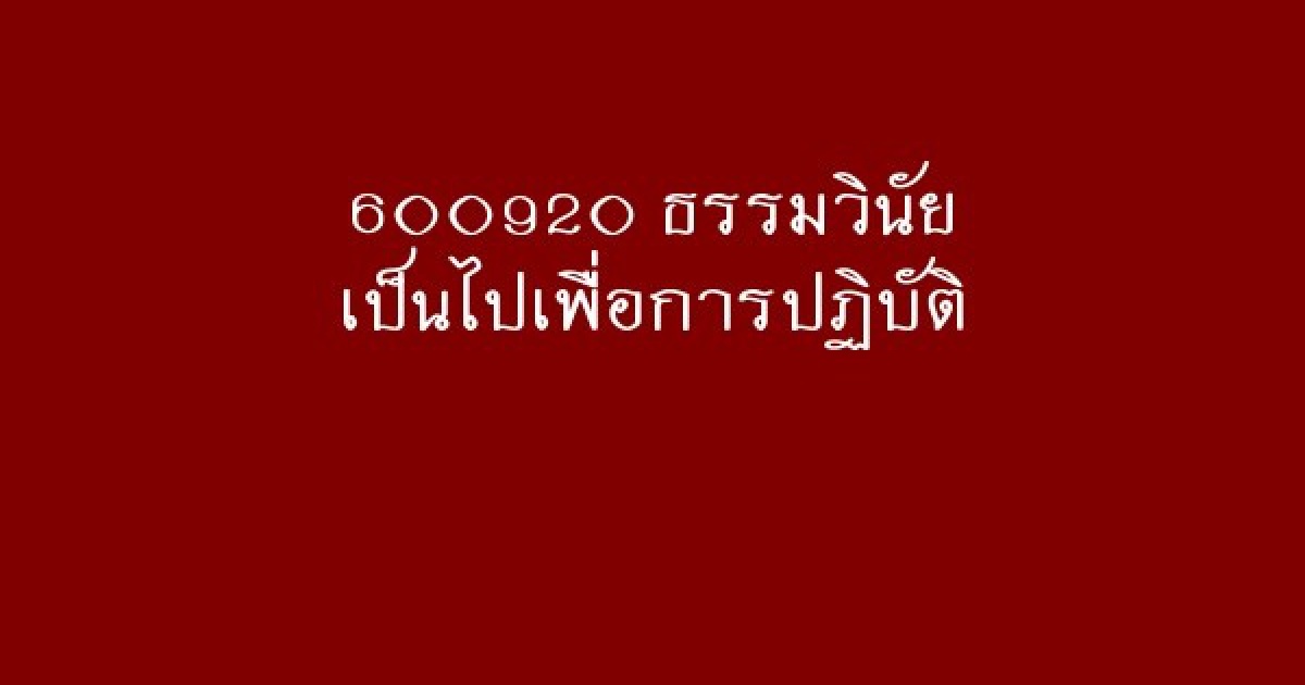 600920 ธรรมวินัย เป็นไปเพื่อการปฏิบัติ