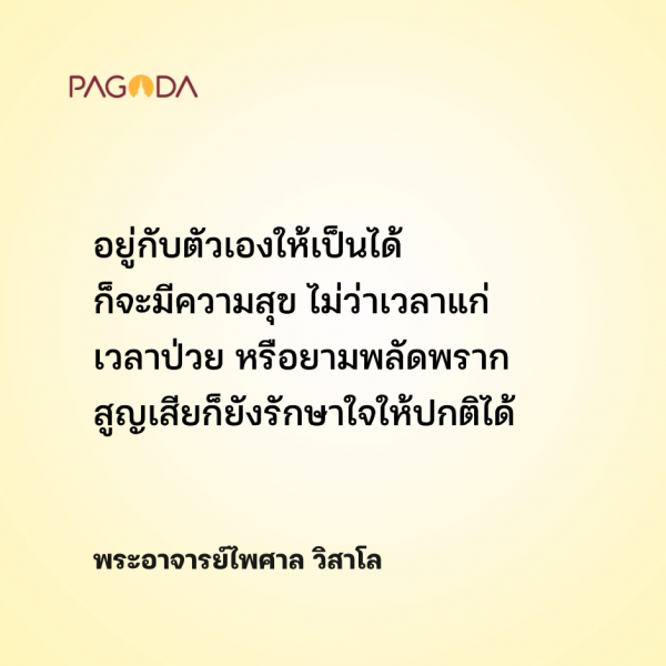 จนกว่าจะอยู่กับตัวเองให้เป็นได้ก็จะมีความสุข ไม่ว่าเวลาแก่ เวลาป่วย หรือยามพลัดพรากสูญเสียก็ยังรักษาใจให้ปกติได้.