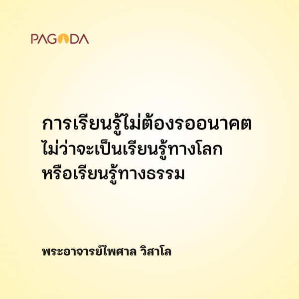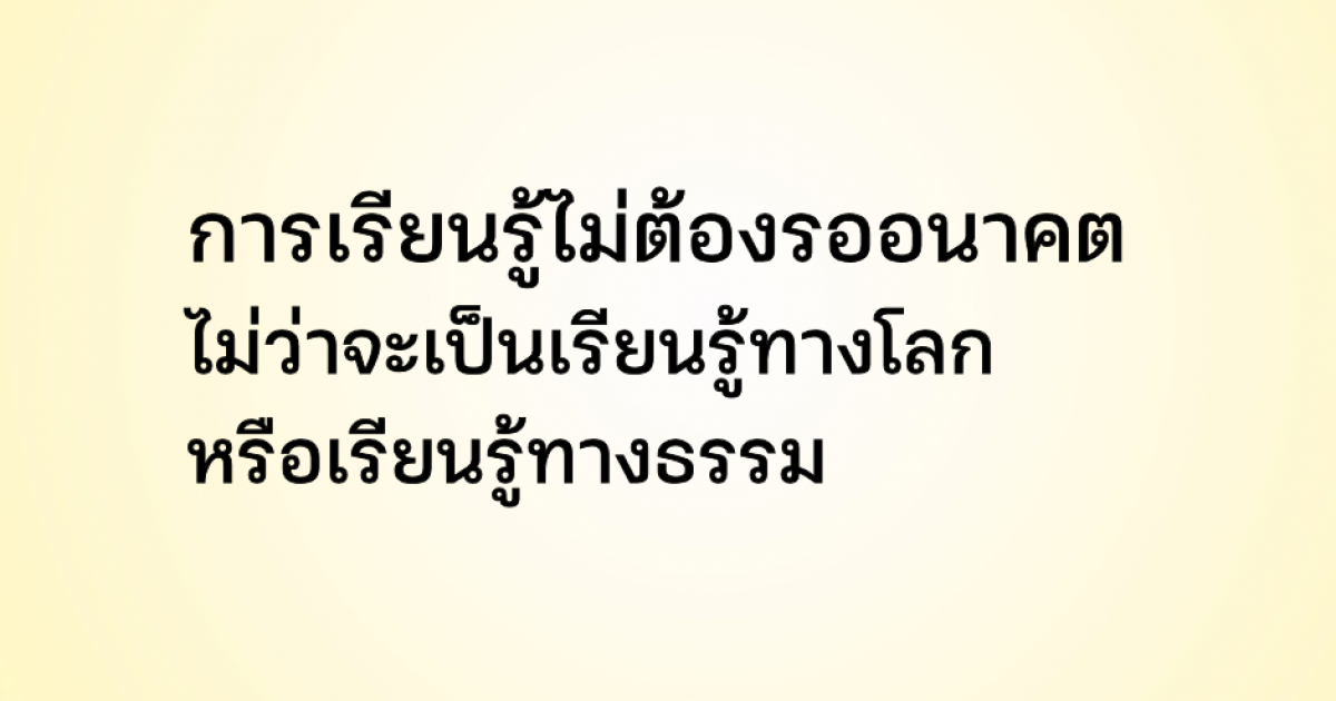 ฉะนั้นขึ้นชื่อว่าการเรียนรู้แล้วไม่ต้องรออนาคต ไม่ว่าจะเป็นเรียนรู้ทางโลกหรือเรียนรู้ทางธรรม