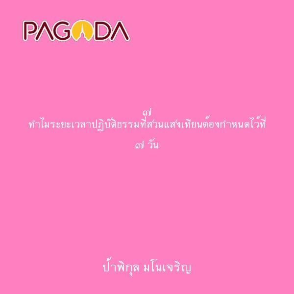 ๗ ทำไมระยะเวลาปฏิบัติธรรมที่สวนแสงเทียนต้องกำหนดไว้ที่ ๗ วัน