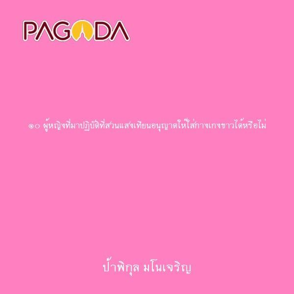• ๑๐ ผู้หญิงที่มาปฏิบัติที่สวนแสงเทียนอนุญาตให้ใส่กางเกงขาวได้หรือไม่