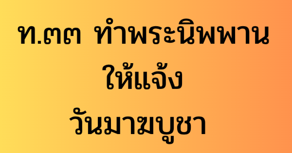 ท.๓๓ ทำพระนิพพานให้แจ้งวันมาฆบูชา