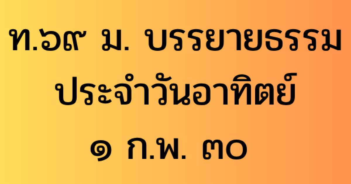 • ท.๖๙ ม. บรรยายธรรมประจำวันอาทิตย์ ๑ ก.พ. ๓๐