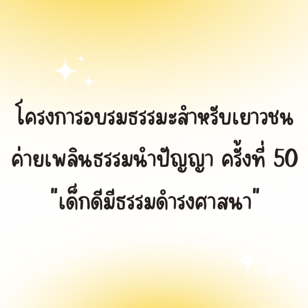โครงการอบรมธรรมะสำหรับเยาวชน ค่ายเพลินธรรมนำปัญญา ครั้งที่ 50