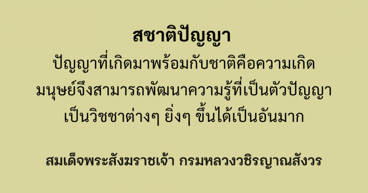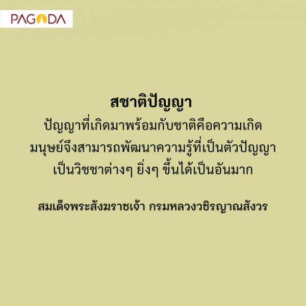 ปัญญานั้นคือความรู้ทั่วถึงตามสัจจะคือความจริง ตามเหตุตามผล ทุกคนผู้เกิดมาย่อมมีปัญญาที่เป็น สชาติปัญญา คือปัญญาที่เกิดมาพร้อมกับชาติคือความเกิดอยู่ด้วยกันทุกคน ดังที่ในปัจจุบันเรียกว่ามีมันสมอง และมันสมองของมนุษย์นั้นย่อมดีเป็นพิเศษ ยิ่งกว่ามันสมองของสัตว์เดรัจฉานทั้งหลาย ทางพระพุทธศาสนานั้นเรียกว่าสชาติปัญญา ปัญญาที่ได้มาพร้อมกับชาติคือความเกิด เพราะฉะนั้น มนุษย์เรานี้จึงสามารถพัฒนาความรู้ที่เป็นตัวปัญญา เป็นวิชชาต่างๆ ยิ่งๆ ขึ้นได้เป็นอันมาก อันรวมเรียกว่าปัญญาเหมือนกัน และก็สามารถใช้ปัญญานี้พัฒนาทุกๆ อย่างให้เจริญมากยิ่งขึ้น เป็นความเจริญทั้งทางด้านความรู้ และทั้งในด้านวัตถุทั้งหลายที่สร้างขึ้นมาดังที่ปรากฏ และการพัฒนาดังที่กล่าวมานี้ก็ต้องอาศัยการศึกษานั้นเอง