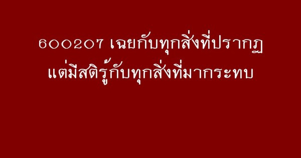 • 600207 เฉยกับทุกสิ่งที่ปรากฏ แต่มีสติรู้กับทุกสิ่งที่มากระทบ