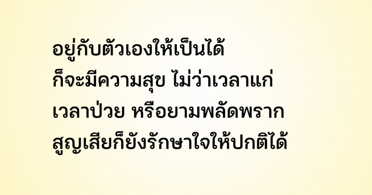 จนกว่าจะอยู่กับตัวเองให้เป็นได้ก็จะมีความสุข ไม่ว่าเวลาแก่ เวลาป่วย หรือยามพลัดพรากสูญเสียก็ยังรักษาใจให้ปกติได้.