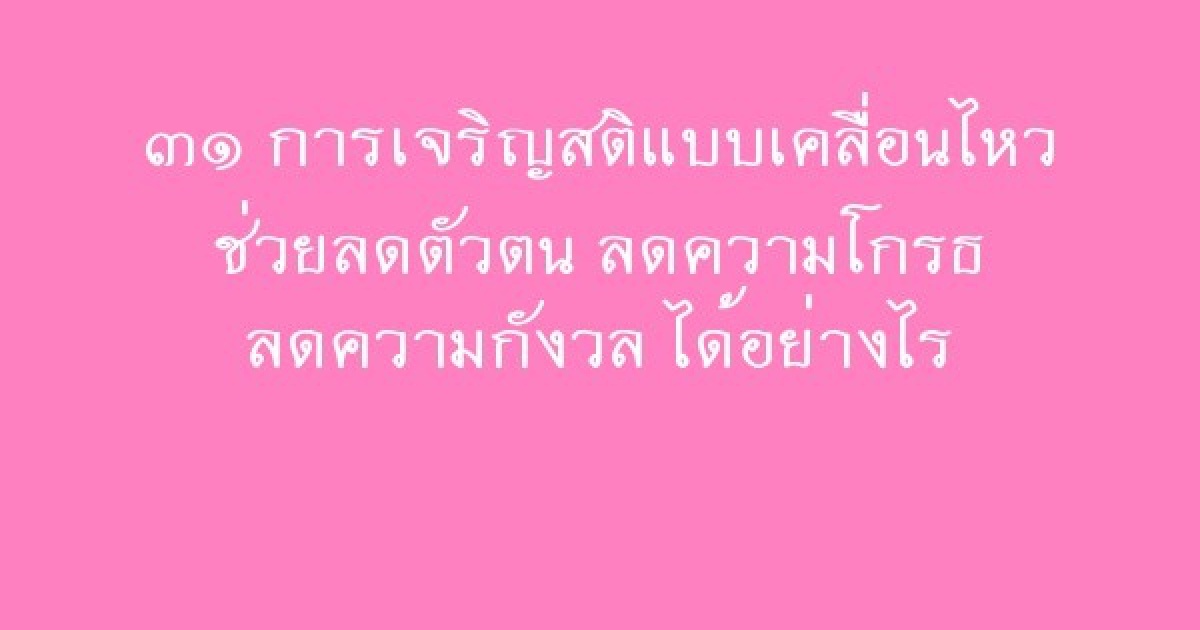 • ๓๑ การเจริญสติแบบเคลื่อนไหว ช่วยลดตัวตน ลดความโกรธ ลดความกังวล ได้อย่างไร