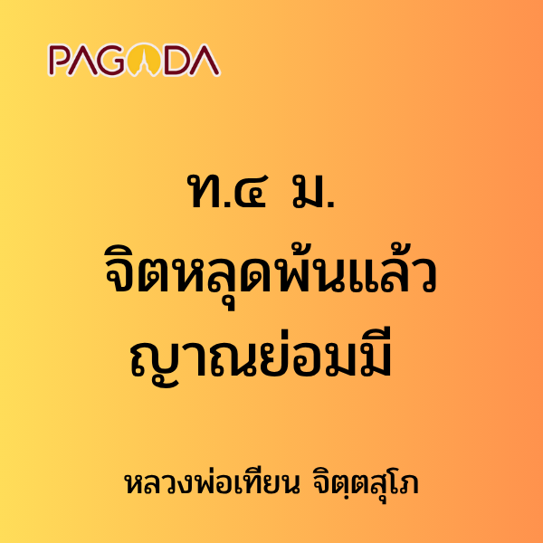 • ท.๔ ม. จิตหลุดพ้นแล้วญาณย่อมมี