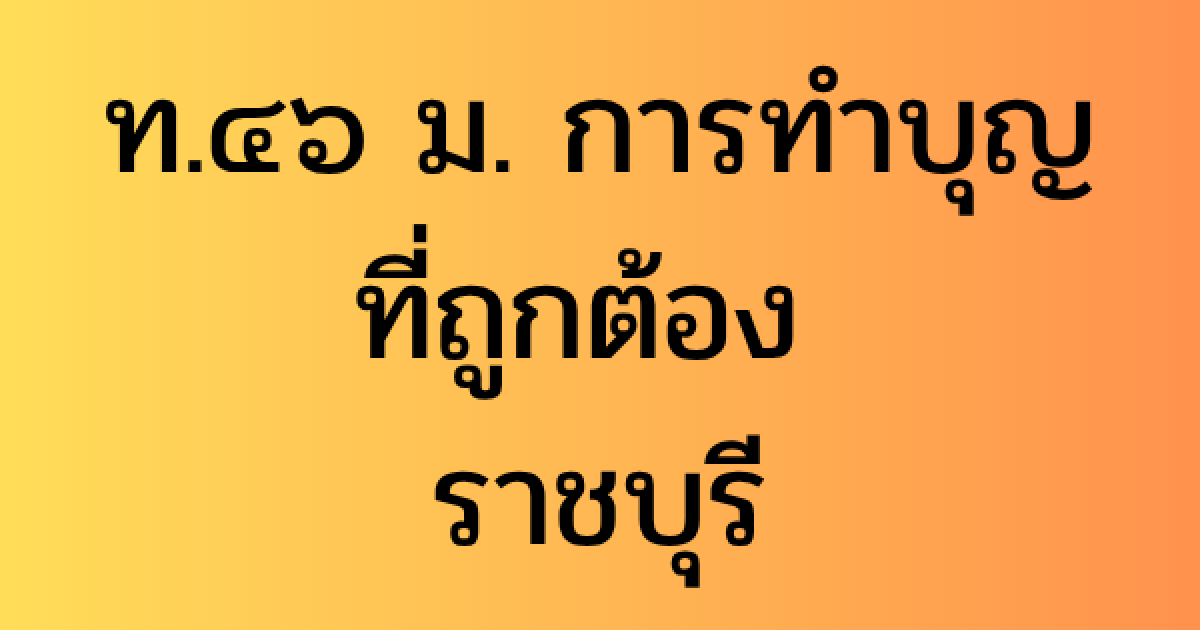 • ท.๔๖ ม. การทำบุญที่ถูกต้อง ราชบุรี
