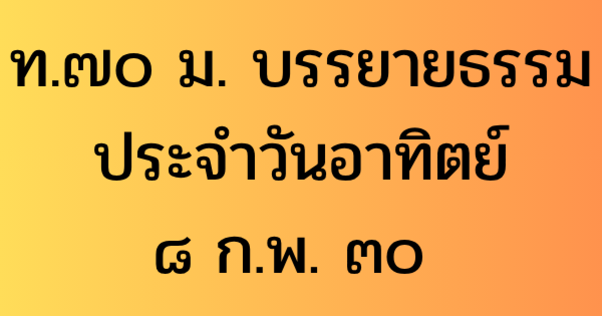 ท.๗๐ ม. บรรยายธรรมประจำวันอาทิตย์ ๘ ก.พ. ๓๐